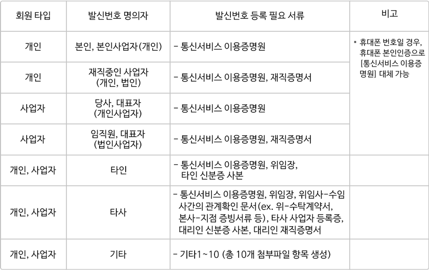 전기통신사업법 제84조의 2(전화번호의 거짓표시 금지 및 이용자보호)에 의거하여 거짓으로 표시된 전화번호로 인한 이용자 피해 예방을 위하여 이용 고객이 사전에 등록된 발신번호로만 문자발송이 가능하도록 하는 제도 [2015년 10월 16일 부터 시행]