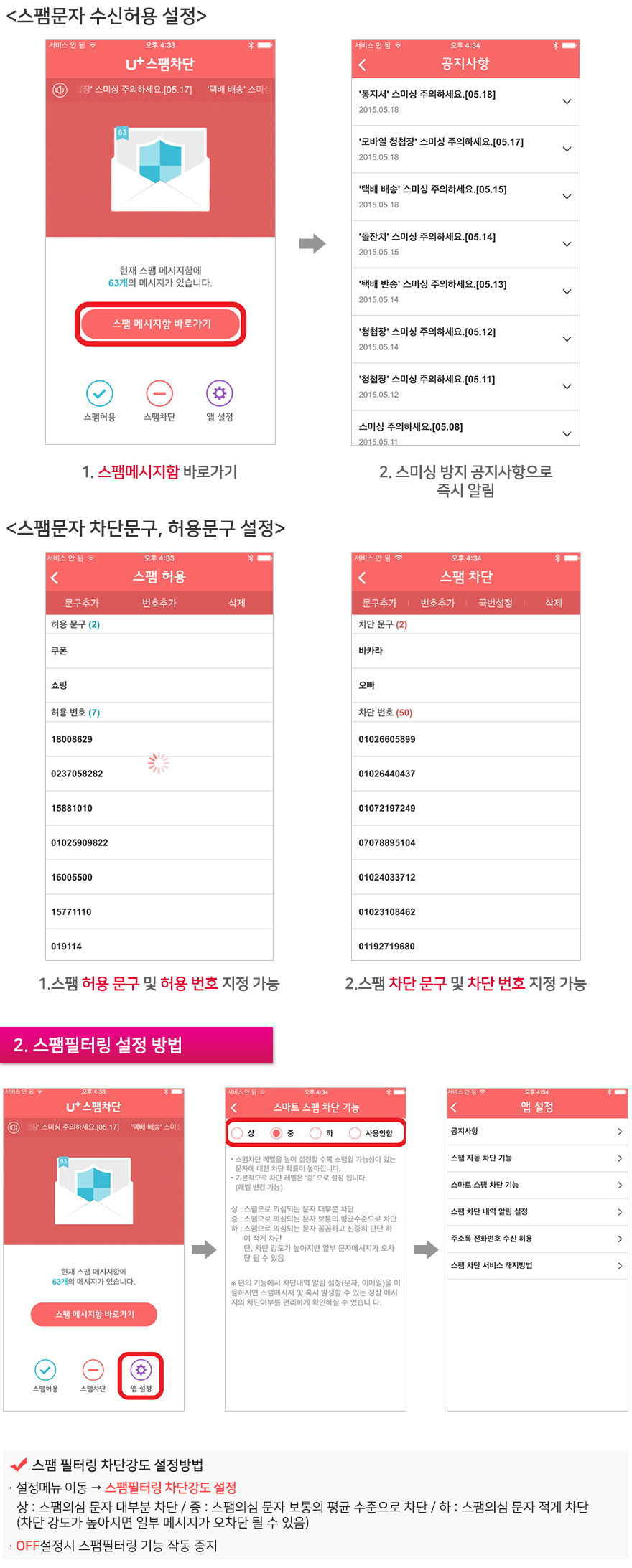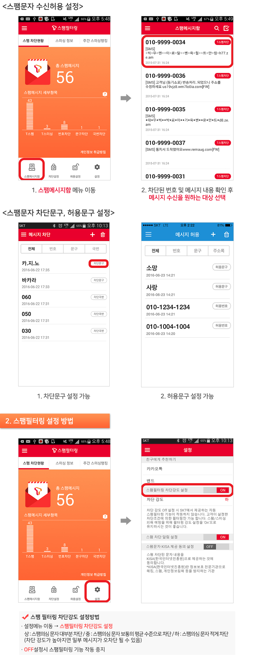 ※ 2011년 11월 14일 부터 전 고객 대상 신규(번호이동포함)/명의변경/기기변경(단, USIM 기변 제외) 시 “스팸 필터링” 서비스 자동가입처리